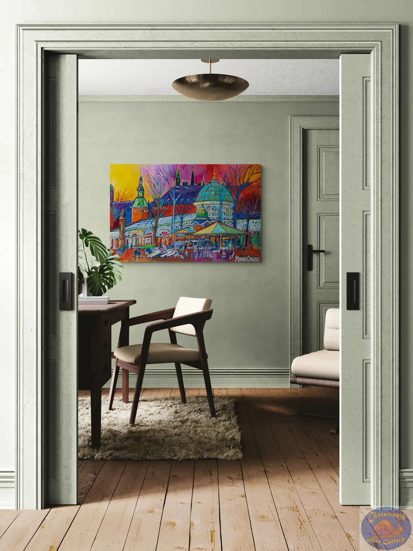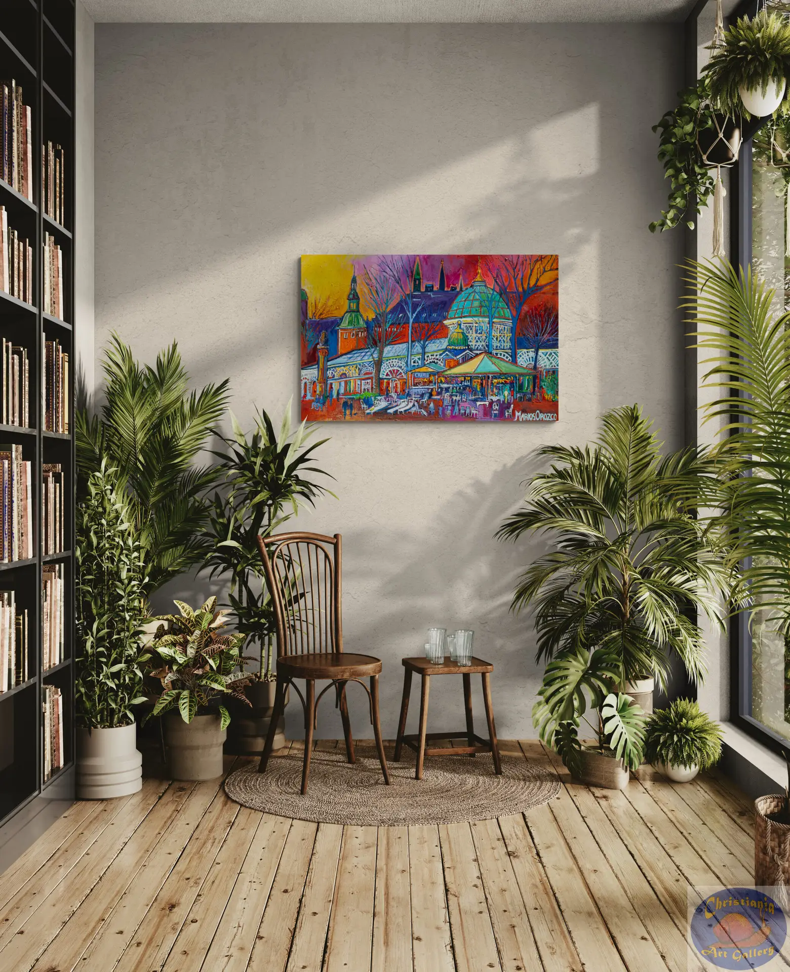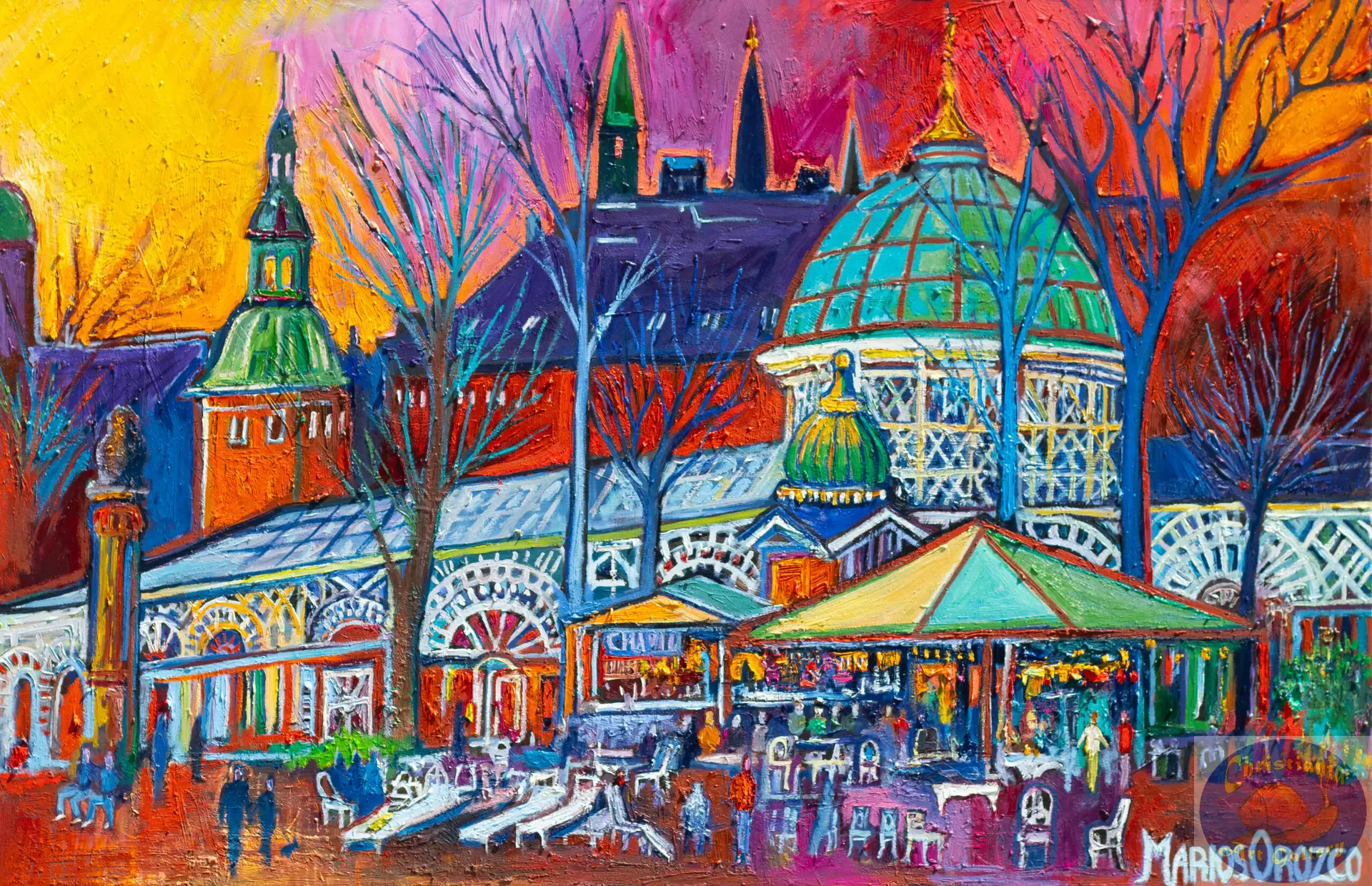 Step into the heart of Copenhagen with Café Chaplon Tivoli — an original oil painting by Marios Orozco that captures life and atmosphere inside the iconic café scene within Tivoli Gardens. With expressive brushwork and warm tones, this piece evokes the rich textures of wood, the ambient glow of light and the lively yet intimate energy of a cultural landmark.
