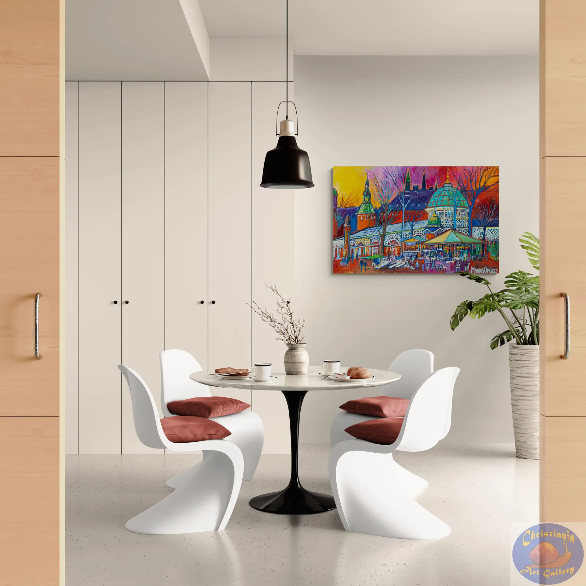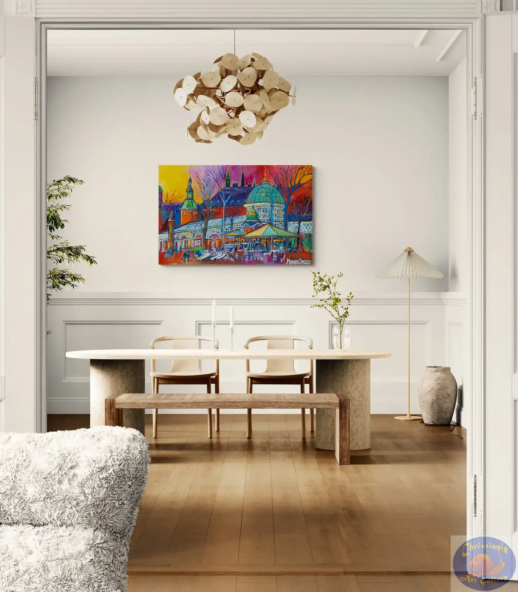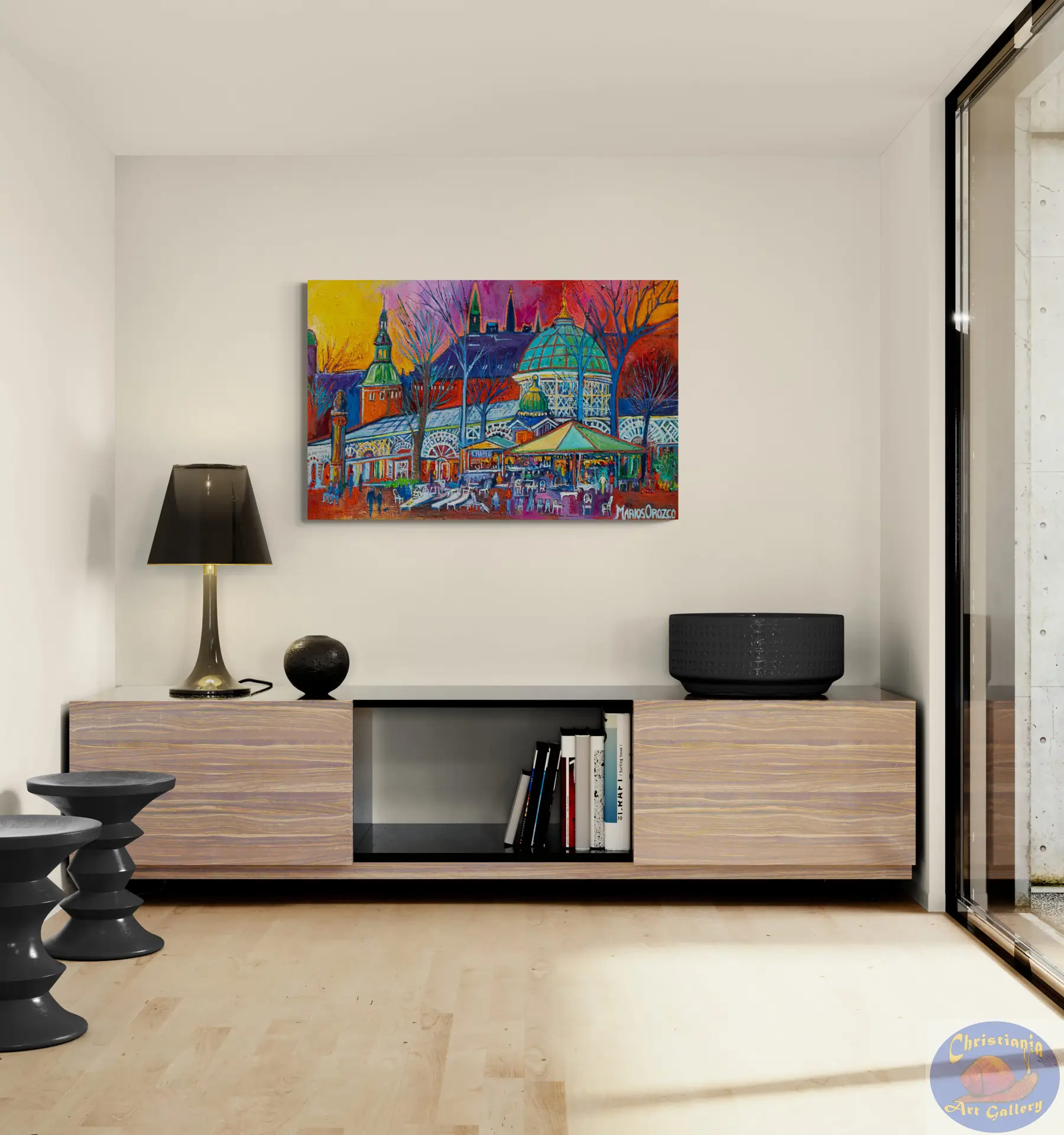 Step into the heart of Copenhagen with Café Chaplon Tivoli — an original oil painting by Marios Orozco that captures life and atmosphere inside the iconic café scene within Tivoli Gardens. With expressive brushwork and warm tones, this piece evokes the rich textures of wood, the ambient glow of light and the lively yet intimate energy of a cultural landmark.