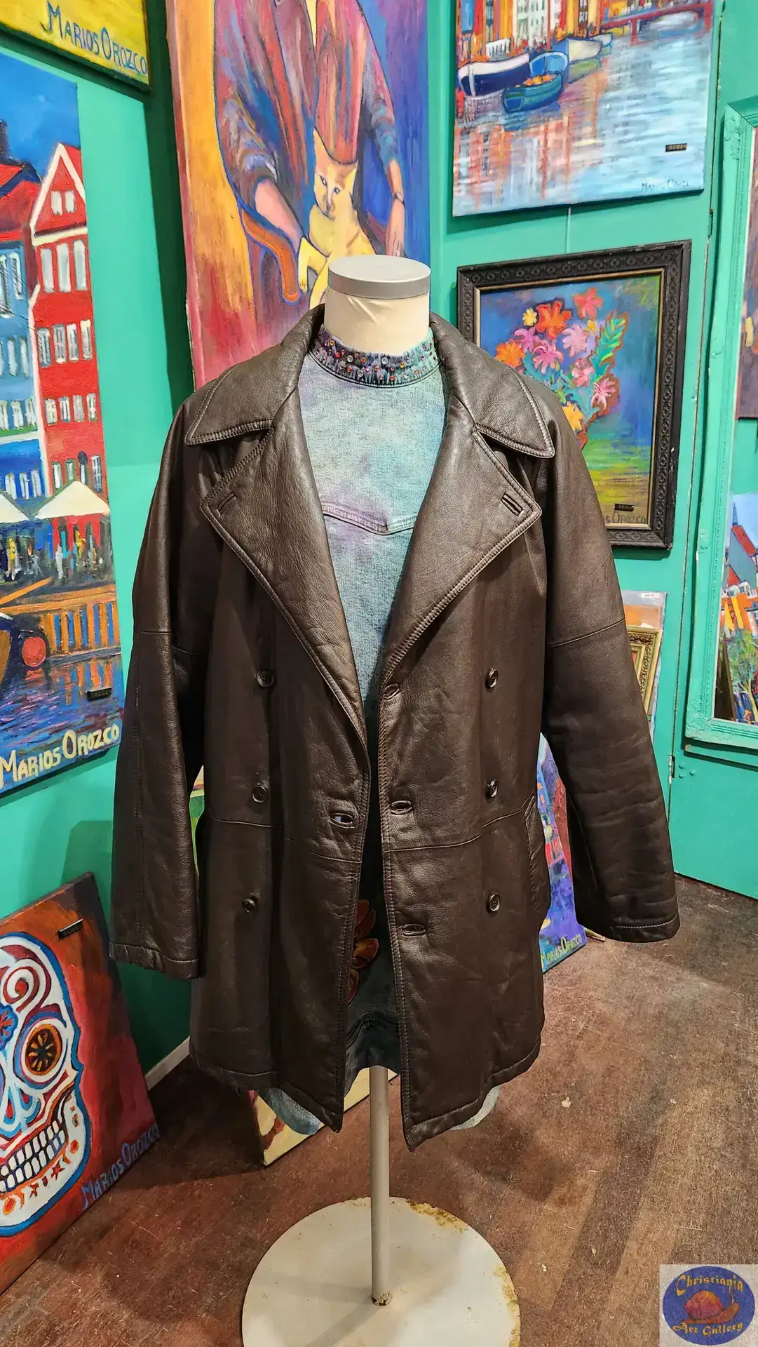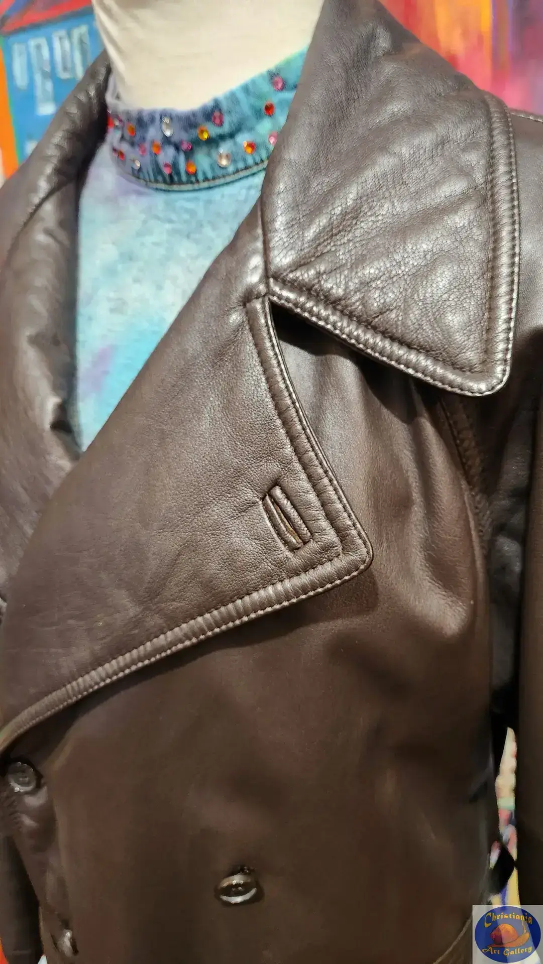 Secondhand chocolate brown leather jacket.
