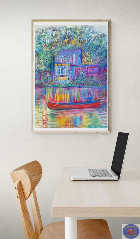 Poster of the painting “New Windowhouse With Man in Canoo”, special edition and signed by Marios Orozco.
