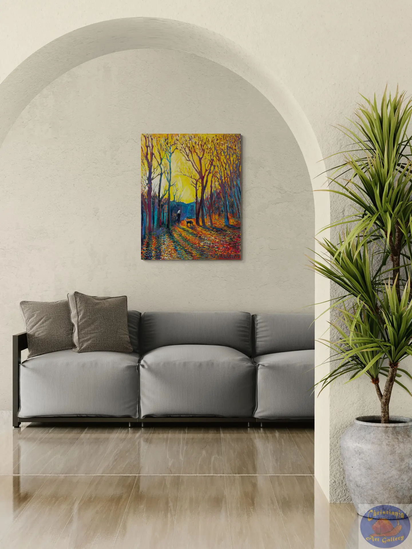 Feel the quiet anticipation of a new season with Spring Approaches in Christiania, an original oil painting by Marios Orozco. This atmospheric piece captures that delicate moment when winter begins to loosen its grip and the first signs of spring softly emerge.