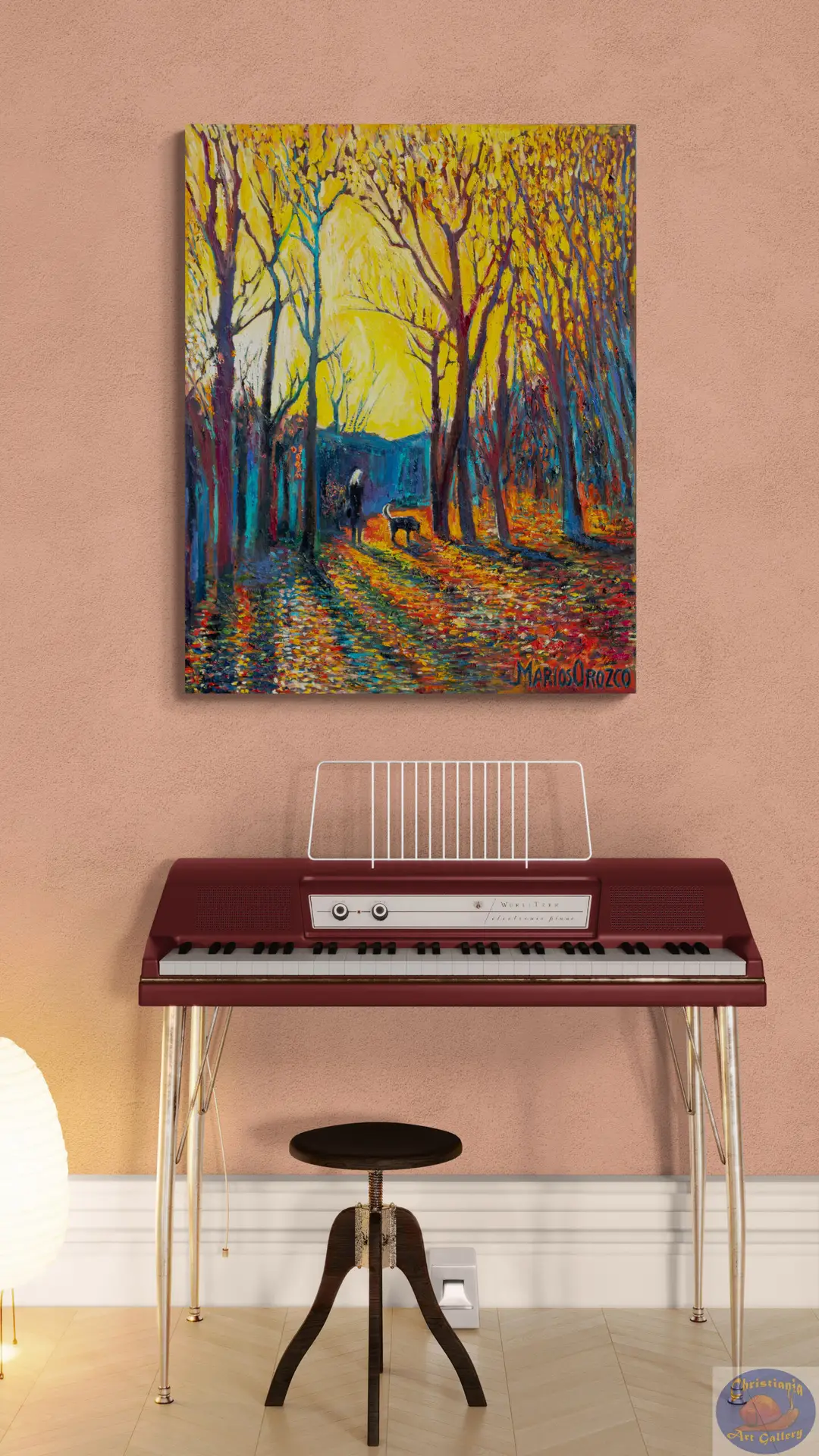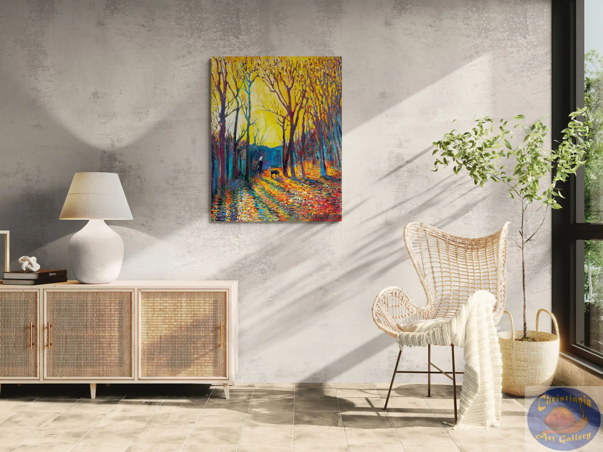 Subtle hints of fresh greenery and changing light weave through the composition, while Orozco’s textured brushstrokes and nuanced color palette evoke both calm and renewal. The familiar pathways and waters of Christiania are transformed into a poetic landscape, where nature and city life exist in gentle harmony.