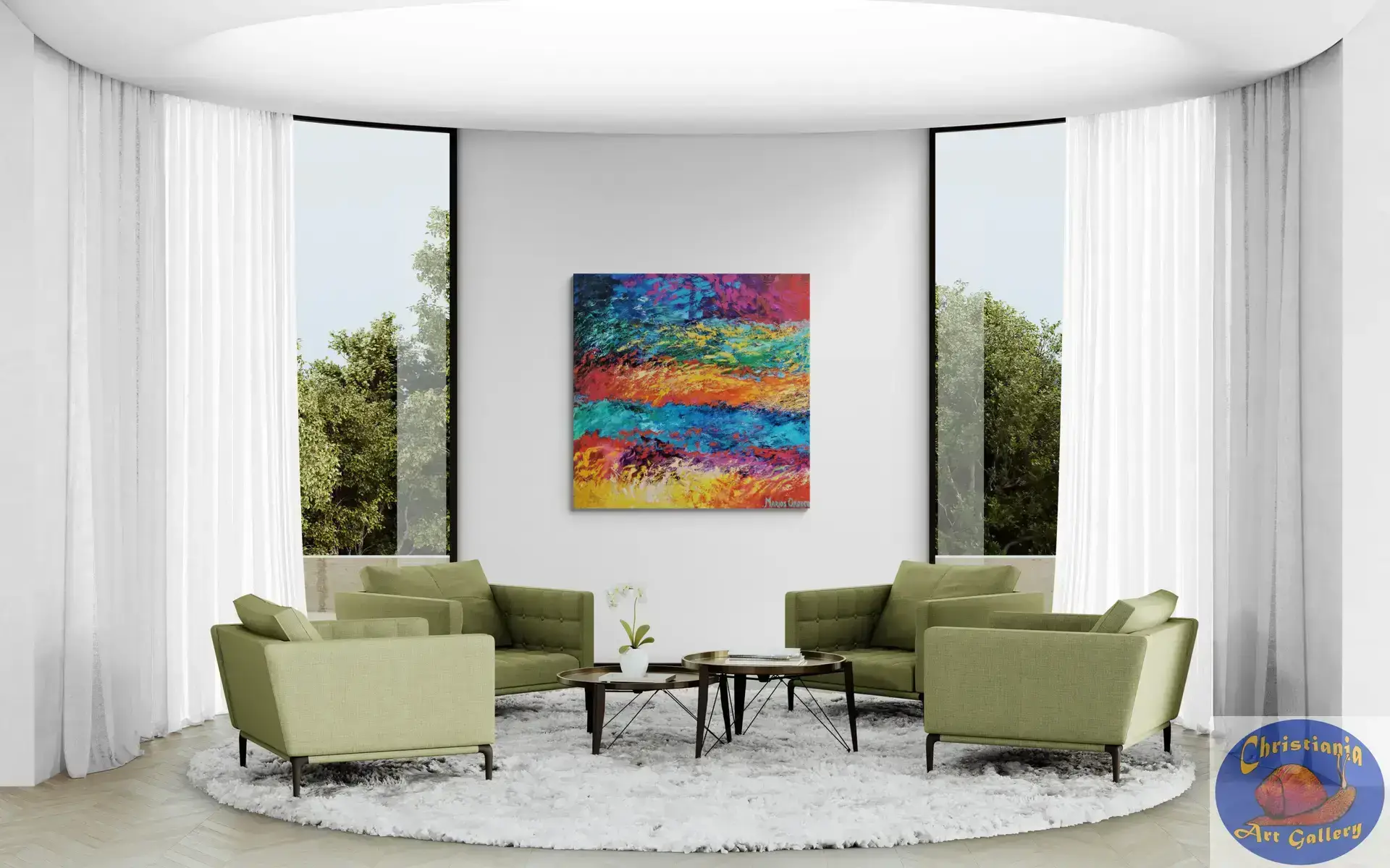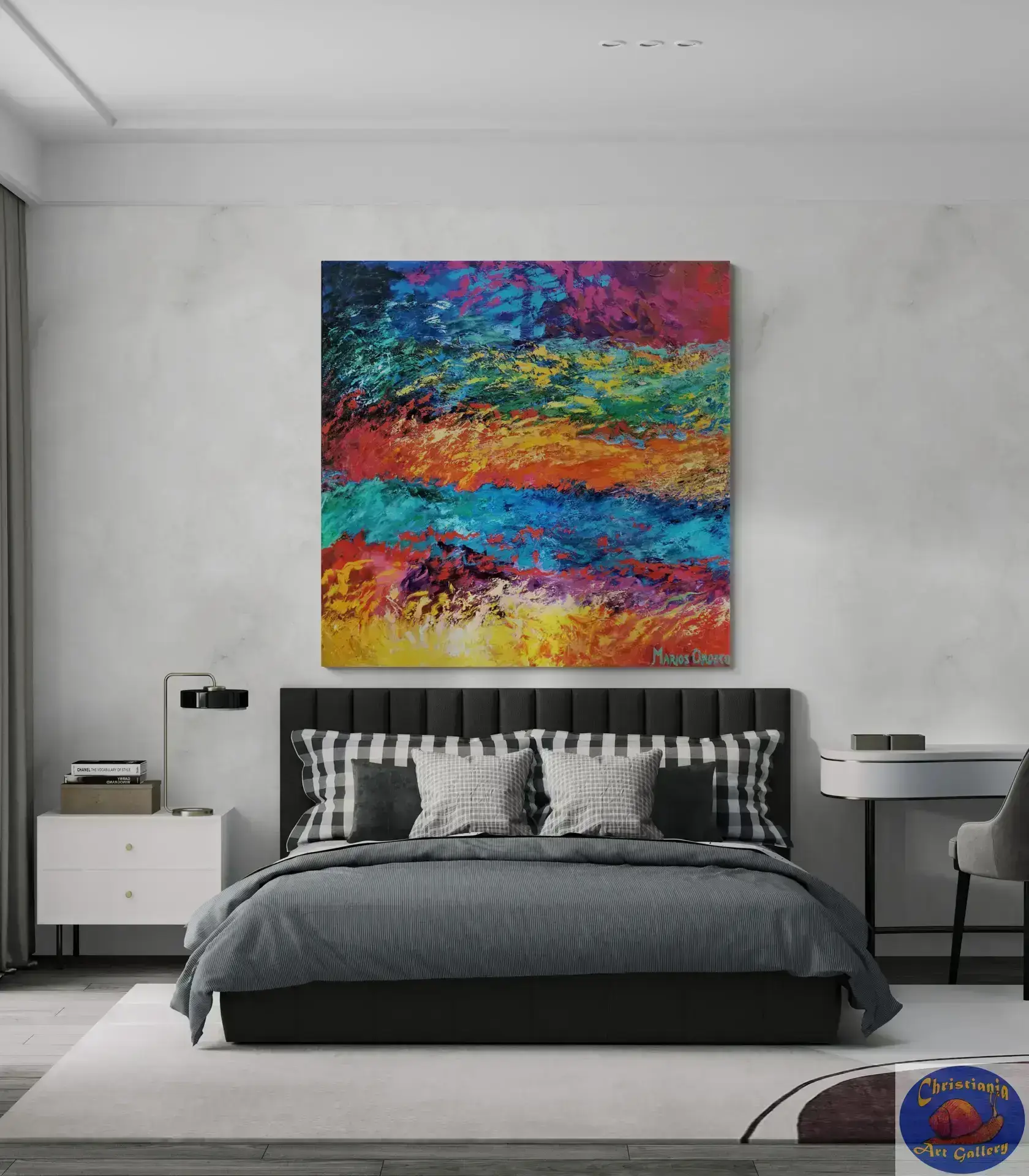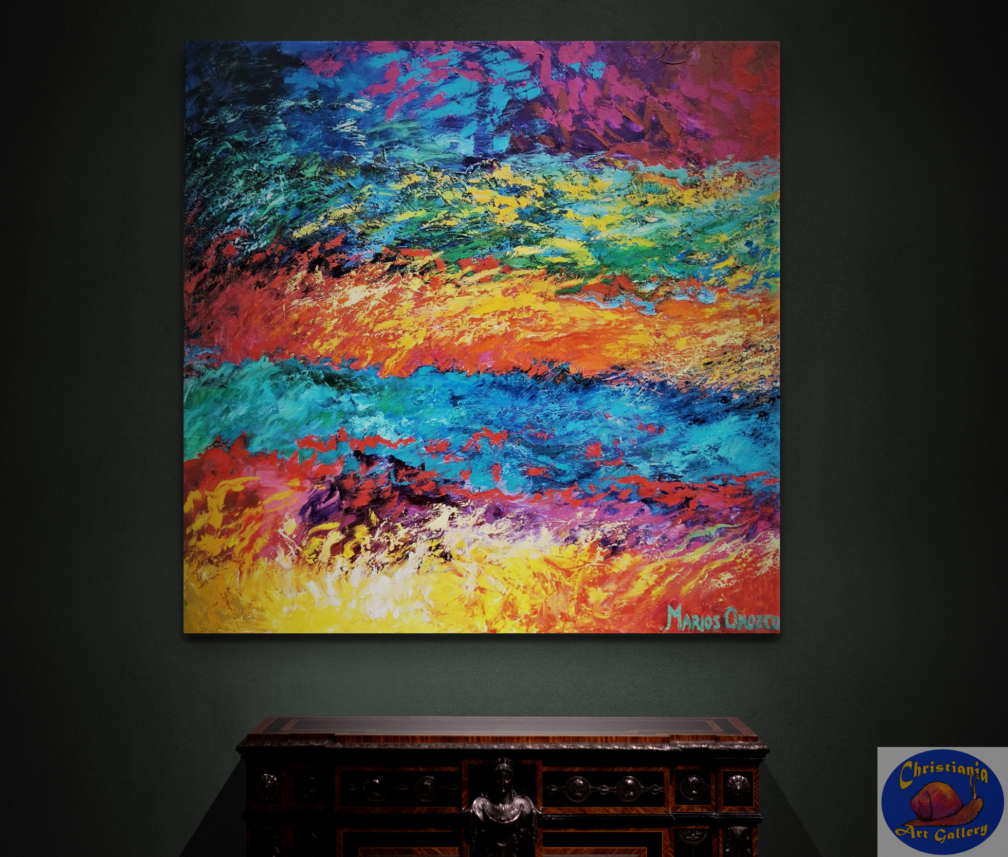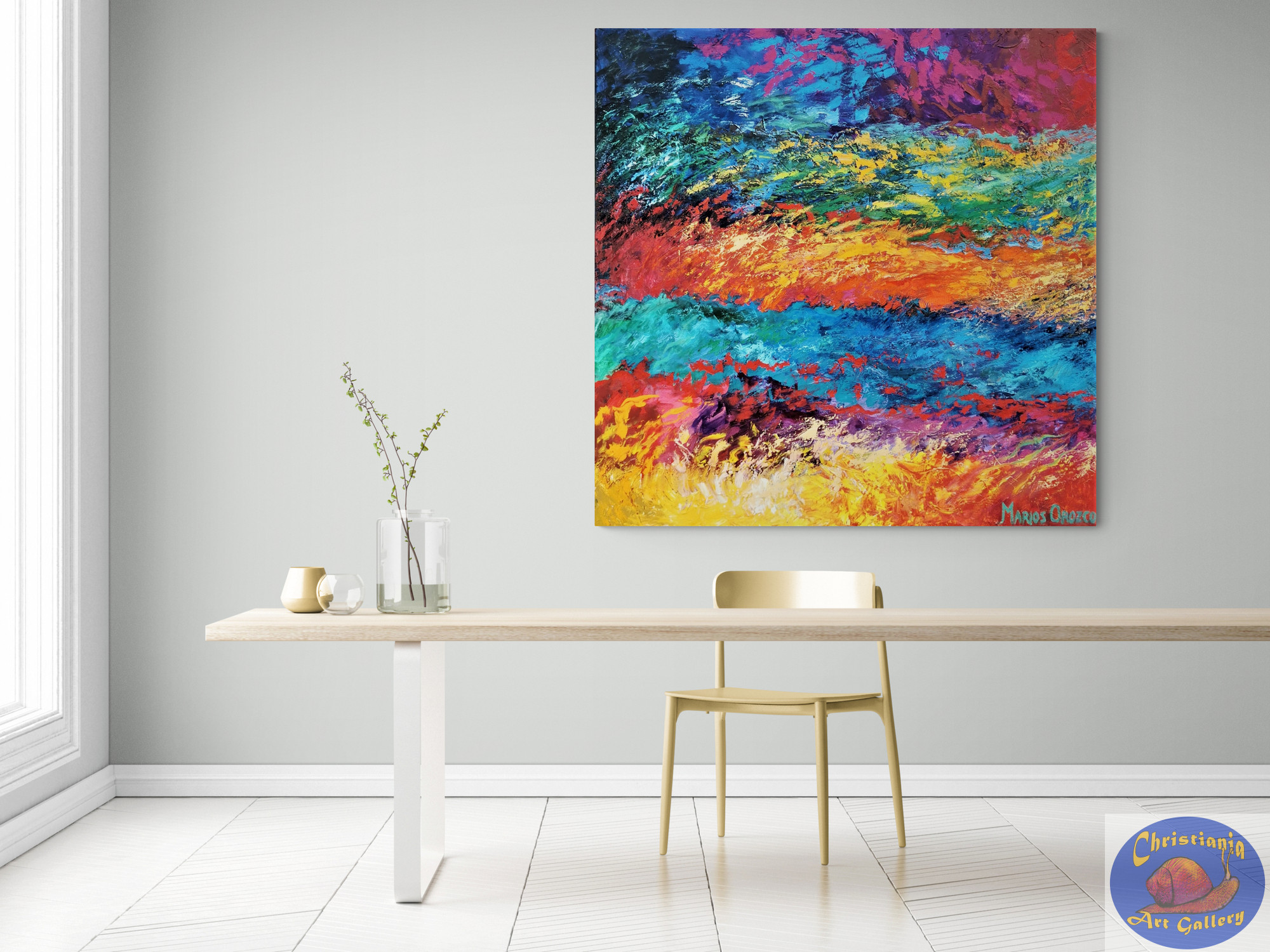 The second abstract painting Marios painted in a series of three paintings. The Passion shows Marios’ passion for colors.