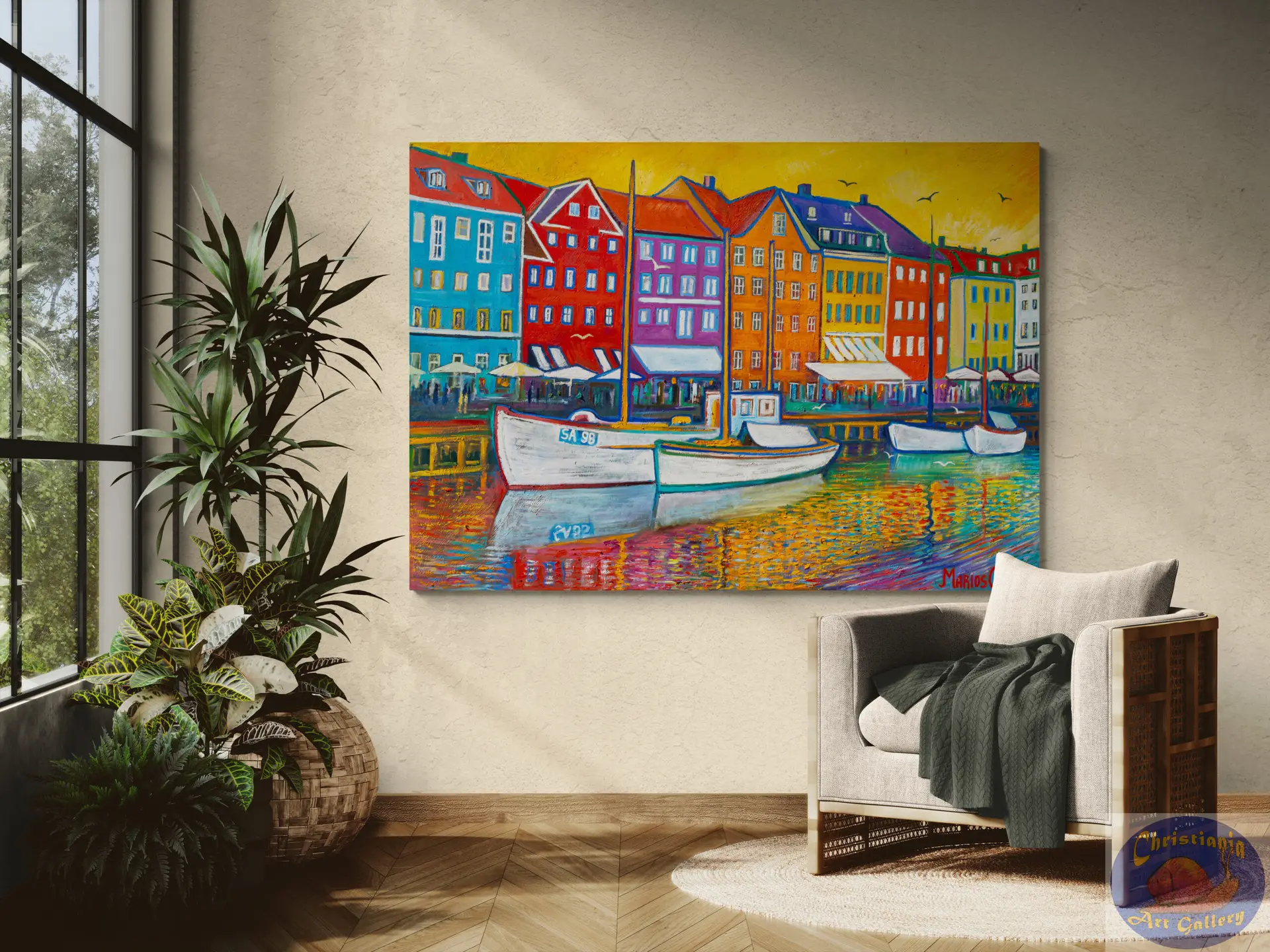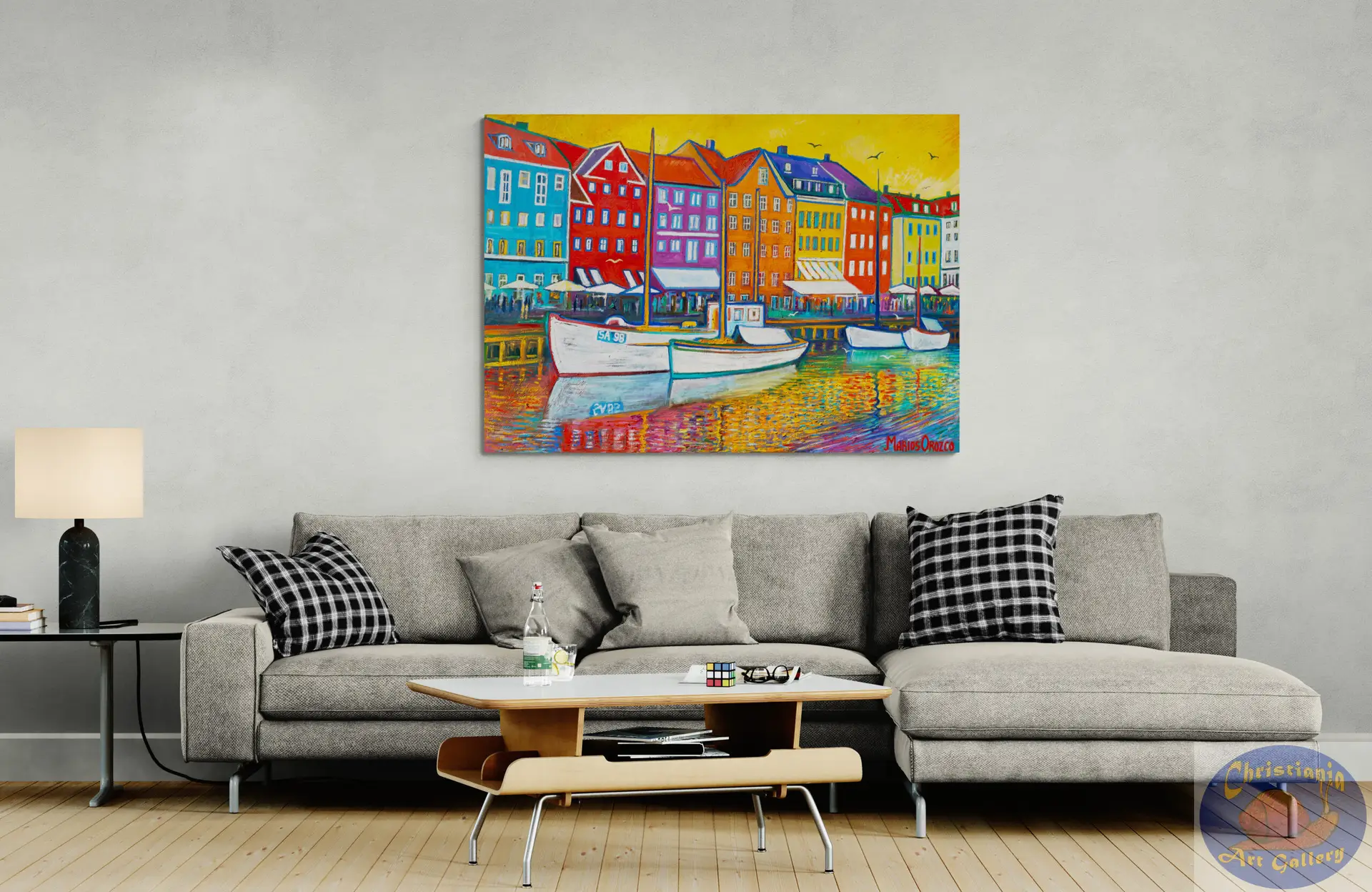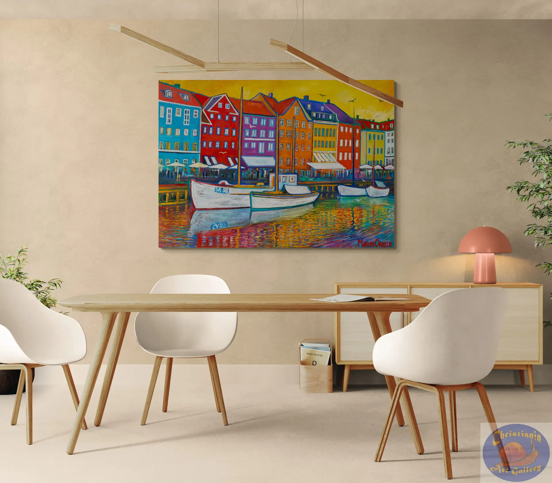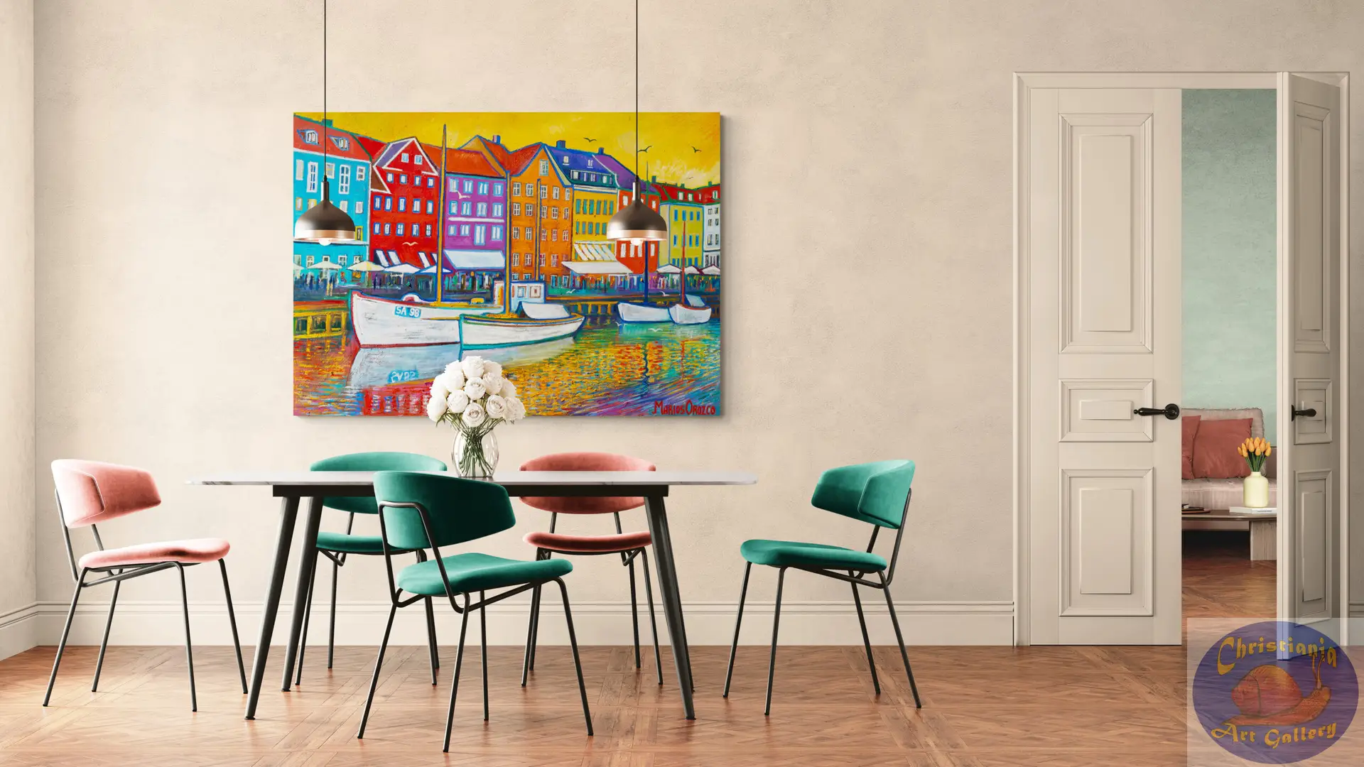 Transform your space with a masterpiece that celebrates the spirit of Copenhagen — a luminous statement of color, place and artistic vision.